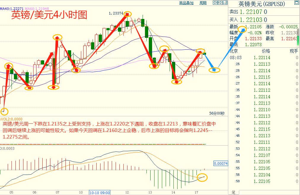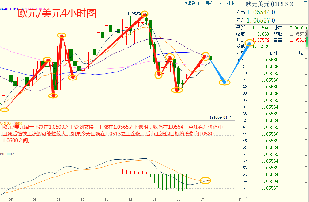 欧美周一下跌在1.0500之上受到支持,上涨在1.0565之下遇阻,意味着欧美短线下跌后有可能保持上涨的走势。如果欧美今天下跌在1.0515之上受到支持,后市上涨的目标将会指向1.0580--1.0600之间。今天欧美短线阻力在1.0575--1.0580,短线重要阻力在1.0595--1.0600。今天欧美短线支持在1.0515--1.0520,短线重要支持在1.0480--1.0485。