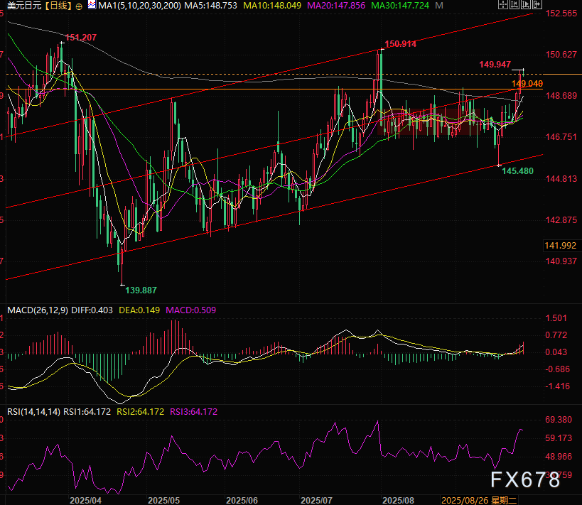 周五(9月26日)纽约时段,美元兑日元下跌0.13%,受美国PCE数据超预期反而压制美元走势,目前交投于149.46附近,我们通过下文找寻线索。回顾今天的走势,亚市早盘的盘中,受不及预期的日本东京CPI发布,汇价一度由149.93跌至149.65跌了近30个点。