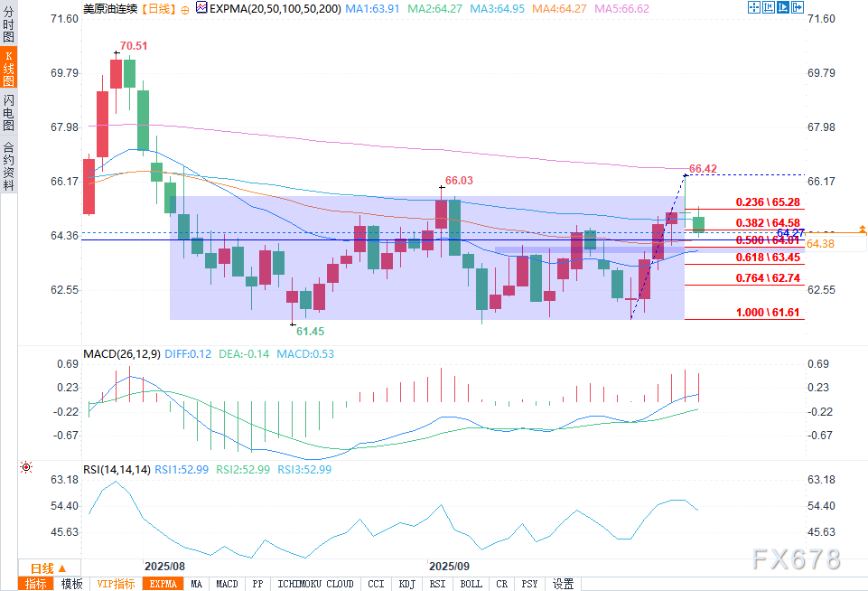 地缘政治紧张局势及中国的采购需求仍在为原油市场提供支撑。若价格能持续突破66.42美元,则可能开启向70.51美元的上行走势。目前来看,在欧佩克+落实增产计划及供应风险前,原油市场前景仍保持 “谨慎看涨”。