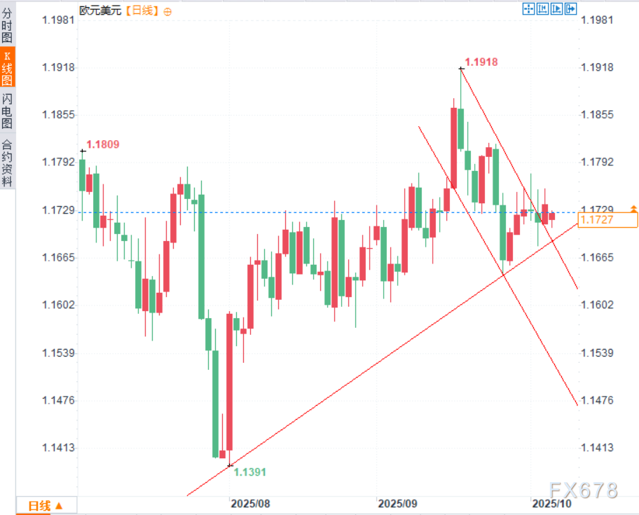 周一(10月6日)欧元兑美元于1.1725附近窄幅震荡。欧元兑美元前景仍谨慎偏向乐观,因市场正经历全球市场相对平静的一周。由于美国政府停摆导致关键数据延迟发布,投资者已将注意力转向私营部门指标和美联储官员的言论。与此同时,尽管德国、法国和意大利的增长数据疲软打压市场情绪,但能源成本下降为欧元提供了温和支撑,减轻了该地区的进口负担。
