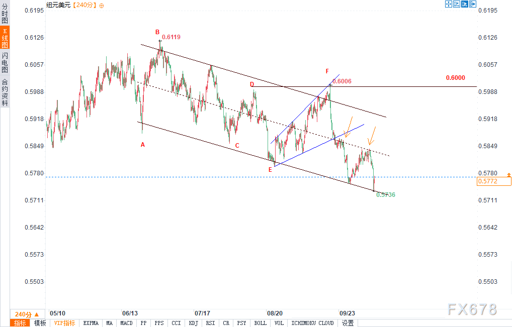 2025年下半年,纽元汇率的波动在走势图上形成了一个下降通道。值得注意的是,F点峰值呈现出以下特征: