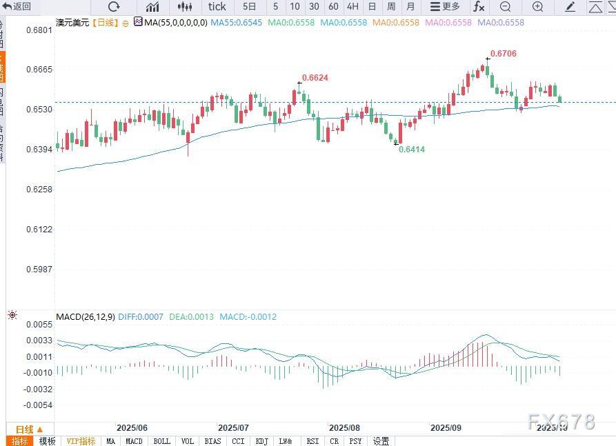 从技术角度看,澳元若失守0.6560将转为中期看空;若守稳该区间,仍可能迎来技术性反弹。短期内,市场焦点仍在美国政府停摆进展与FOMC会议纪要所释放的政策信号。