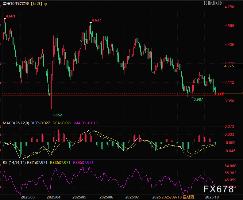 法国10年期国债收益率攀升至3.11%,与德国国债的收益率差扩大至13个月高点,这一走势直观反映出欧元区内主权信用风险溢价的上升,这些均对欧元起到了压制。