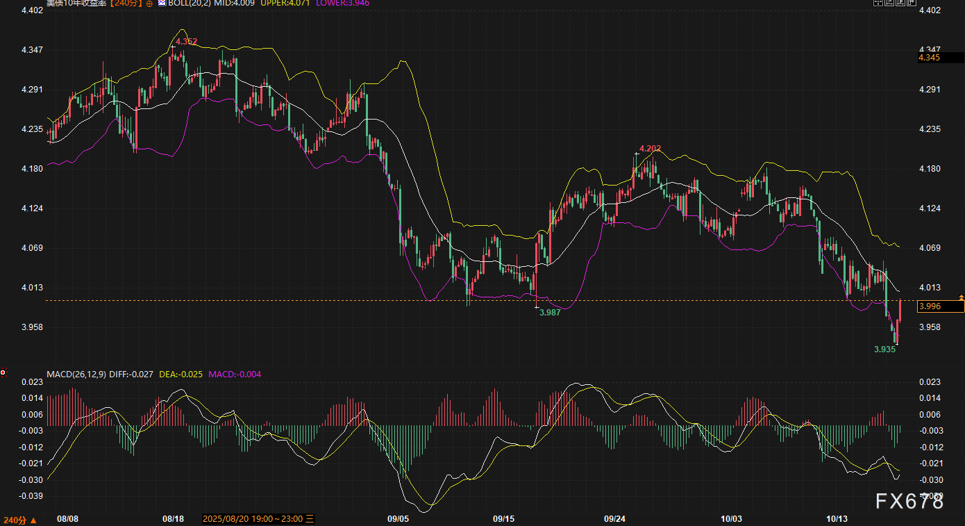 北京时间周五(10月17日),美国国债市场正面临政府停摆带来的数据真空与突发区域银行信用风险的叠加冲击。尽管隔夜收益率曲线短端录得年内新低,但波动率轮廓持续高企,交易员在4.00%心理关口附近陷入战术观望。本文将基于停摆前基线,深入分析新的金融稳定变数和缺失数据对美联储政策的影响,并结合关键的技术指标,给出一周走势预判。