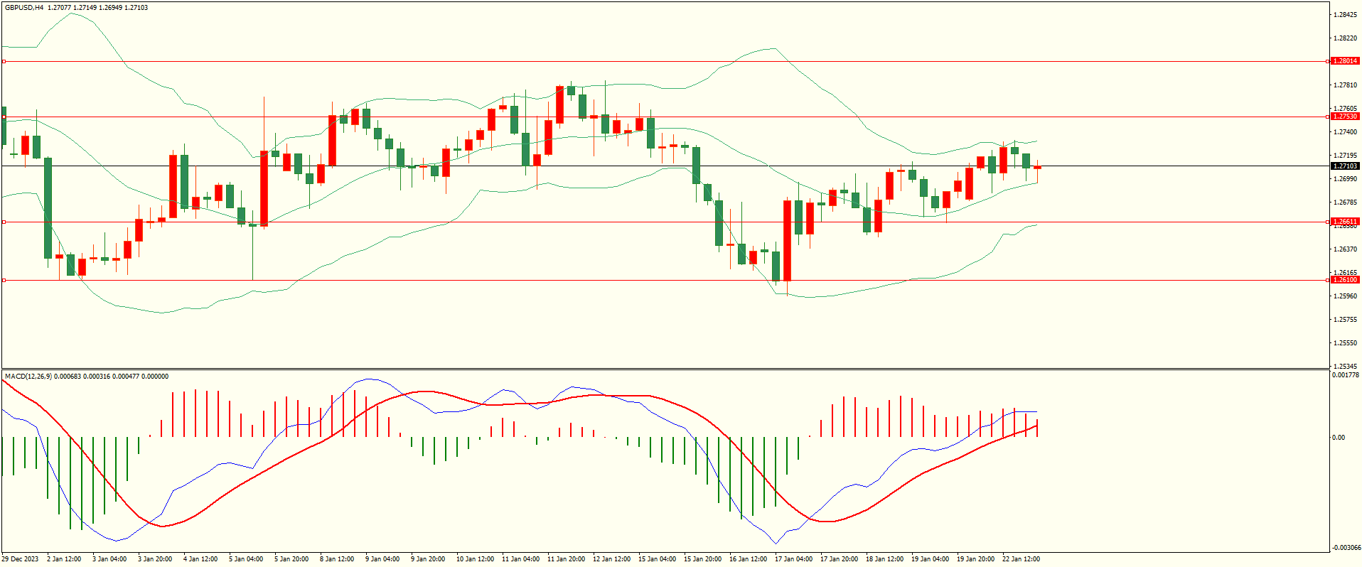 美日昨日反弹过后遇阻回落,纽约盘时段再次回归多空震荡,日线报收下影线小阴线,短线依然方向不明,从4H来看,布林中轨略有走平,MACD零轴上方运行,日内下方首要支撑147.65,第二支撑147.10,上方阻力148.50,149.05,保持在第一支撑上方短线有望测试第一阻力。