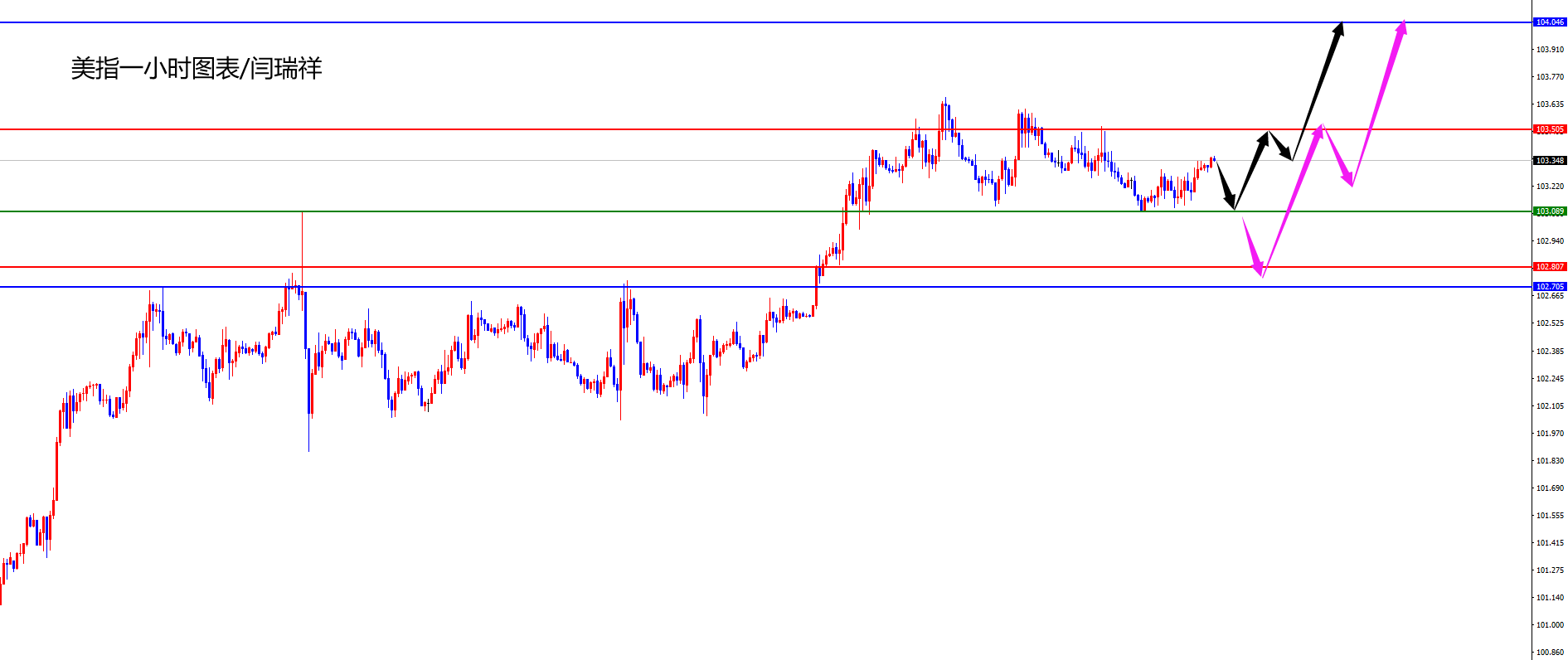 美指102.70-80区间多,防守5美金,目标103.50-104