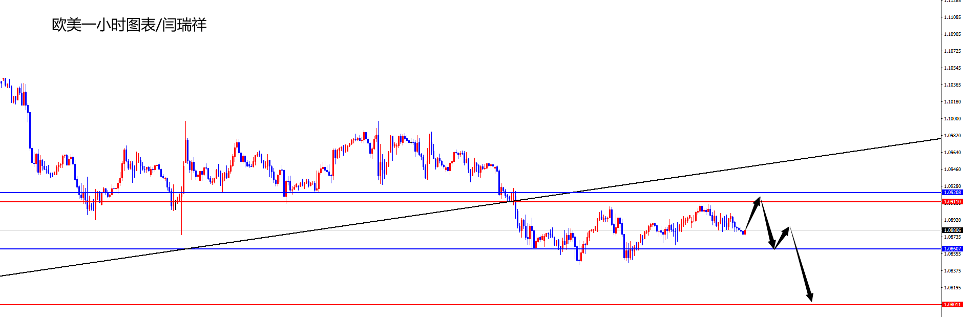 欧美1.0910-20区间空,防守40点,目标1.0860-1.0800