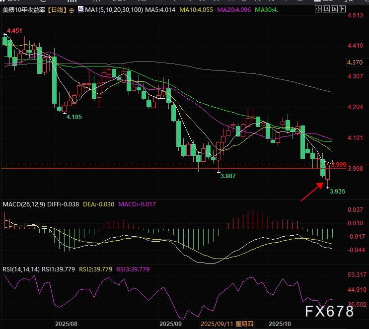 (美国10年期国债收益率日线图,来源:易汇通)