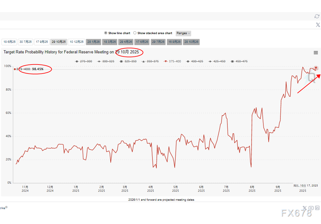 此事件也推升了CME利率期货上升至98.45%,利率期货市场显示,交易员已提前计价降息预期。背后逻辑在于,即便通胀仍高于目标水平,央行或需优先维护金融稳定。