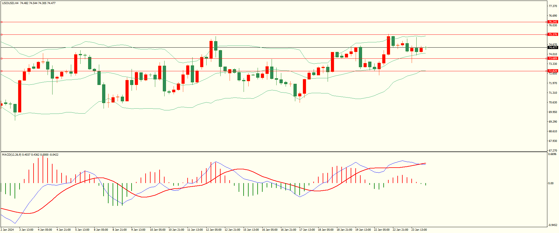 原油昨日回调至第一支撑下方展开反弹,尾盘时段略有反复,日线报收上下影线小阴线,前高依然构成上行首要阻力,收复后方可继续,从4H来看,布林中轨偏上,MACD零轴上方运行,日内下方首要支撑73.65,第二支撑72.80,上方阻力75.35,76.20-30,保持在第一支撑上方短线有望测试第一阻力。