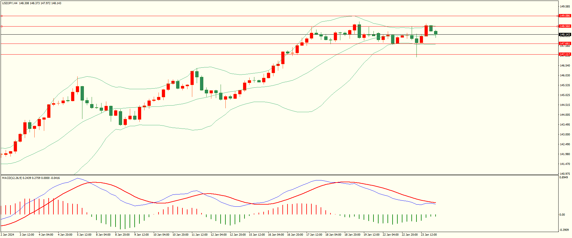 美日昨日反弹至第一阻力承压下行,盘中回落至第一支撑再次展开反弹,日线报收上下影线小阳线,阻力与支撑并存,短线的多空争夺尚未结束,从4H来看,布林中轨略有走平,MACD零轴上方运行,日内上方首要阻力148.55,第二阻力149.05,下方支撑147.65,147.10,保持在第一阻力下方短线有望回测第一支撑。