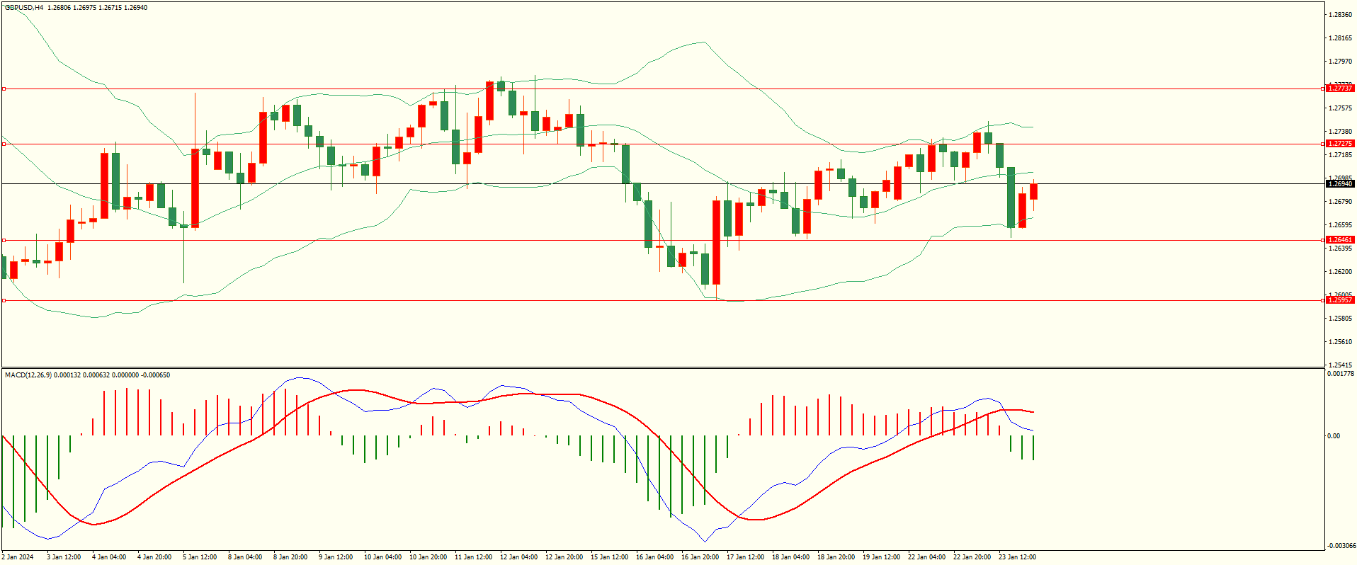 英镑昨日先扬后抑,欧盘时段触及第一阻力下方冲高回落,日线报收上下影线中阴线,目前下方紧邻前密集支撑区,下破后方可继续,从4H来看,布林上下轨略有收窄,MACD零轴上方运行,日内上方首要阻力1.2725,第二阻力1.2770,下方支撑1.2645,1.2595,第一阻力在没有收复前短线有望测试第一支撑。