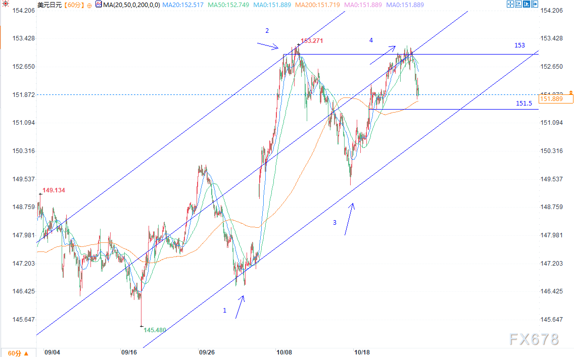 151.50关口是重要支撑位,10月21日至22日期间曾稳固守住该位置;