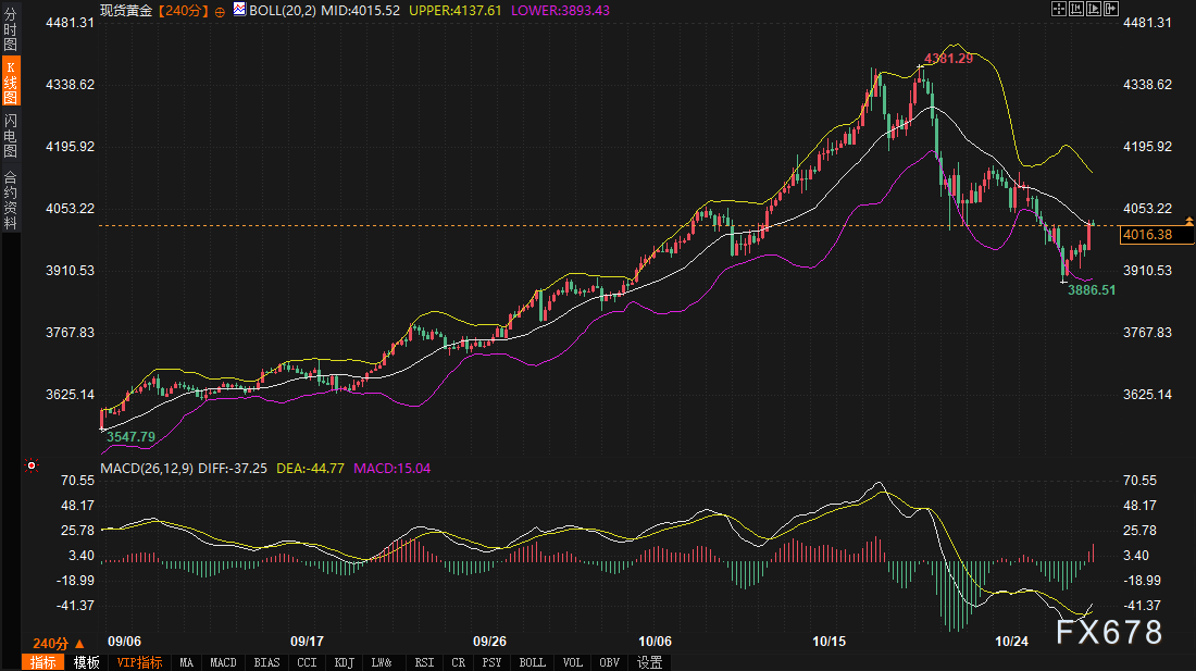 周三(10月29日),外汇与大宗市场在美联储会议前夕呈现出谨慎回暖的迹象。美元指数小幅收复失地,站上98.85关口,日内涨幅0.12%,反映出交易者对贸易谈判进展的初步乐观。10年期美债收益率则触及3.996%,日内攀升0.50%,收益率曲线整体趋平,凸显投资者对政策转向的敏感。同期,现货黄金意外上探4017.73美元/盎司,涨幅达1.65%,与美元同向波动,这在债市主导的环境下显得颇为反常。整体而言,美债收益率的回升正悄然牵动美元的韧性,而黄金则借债市波动放大避险诉求,整个市场氛围笼罩在美联储决策的倒计时中,交易量虽低于常态,但关键价位间的博弈已然拉开帷幕。