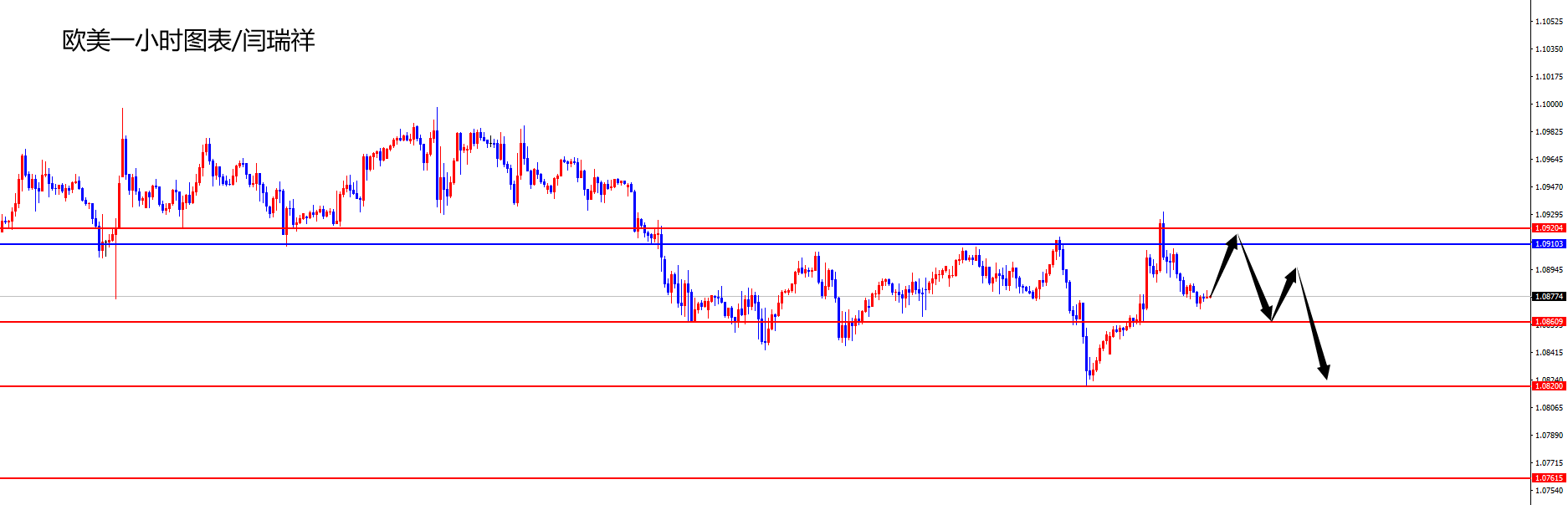 欧美1.0910-20区间空,防守40点,目标1.0860-1.0820