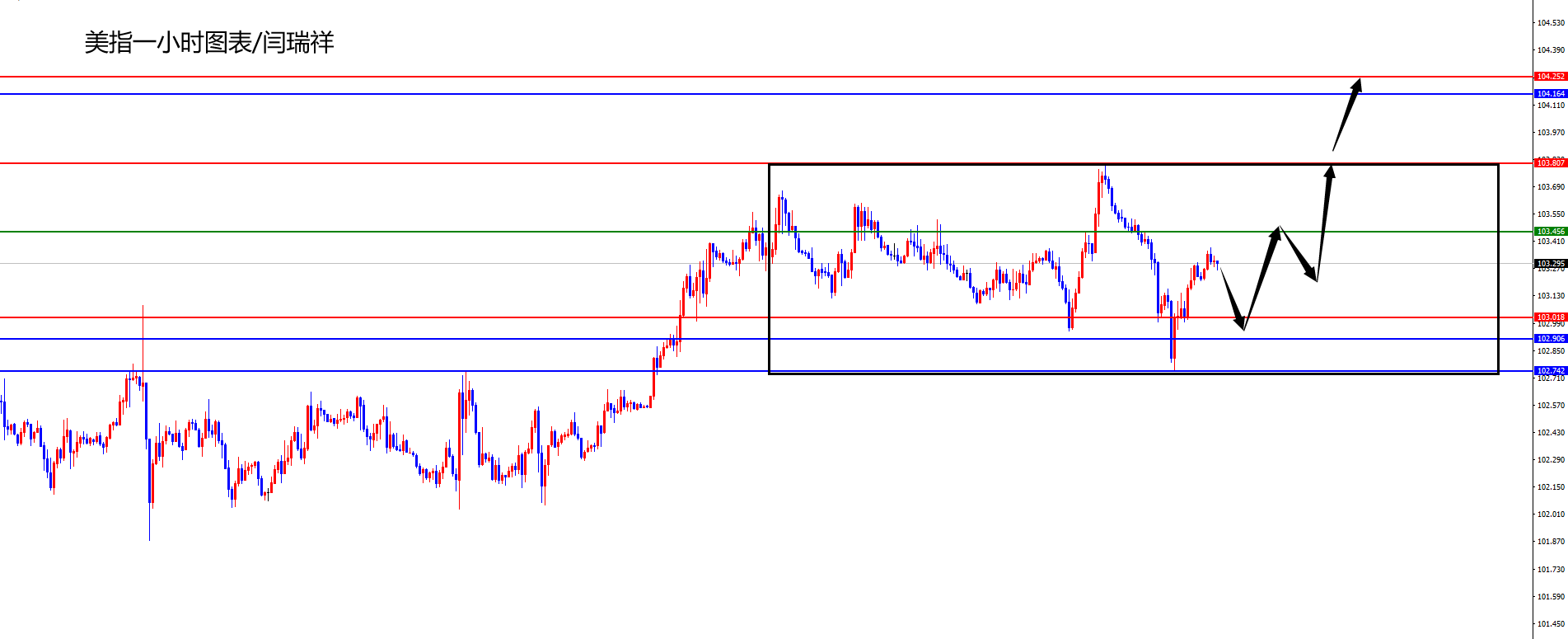 美指102.90-103区间多,防守5美金,目标103.45-80