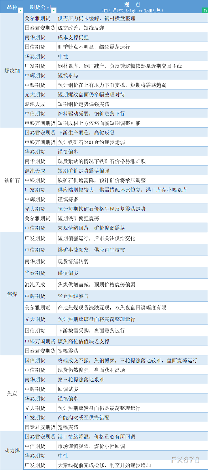 期货公司观点汇总一张图:10月18日黑色系(螺纹钢、焦煤、焦炭、铁矿石、动力煤等)