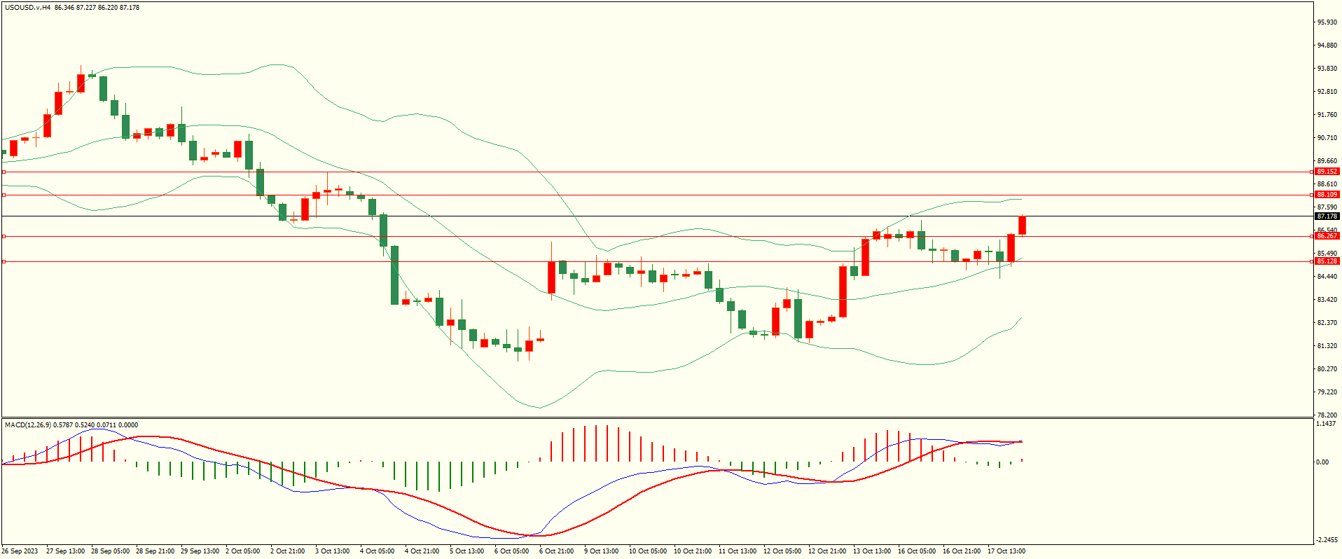 原油昨日震荡调整后延续走高,日线报收下影线小阳线,目前上方临近前低阻力区,收复后方可继续,从4H来看,布林中轨偏上,MACD零轴上方运行,日内下方首要支撑86.20-30,第二支撑85.10,上方阻力88.10,89.10-20,保持在第一支撑上方短线有望测试第一阻力。