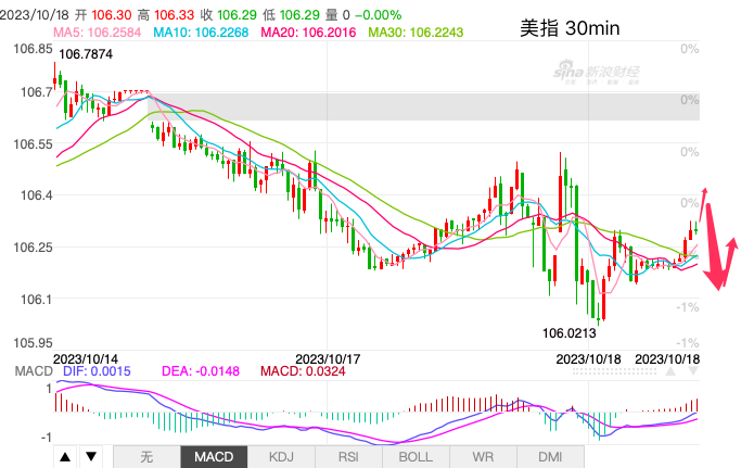 美指中期走势周线图9连阳,中期走势保持在强劲上涨的趋势中。汇价在107.35止步回调,汇价依旧受到均线系统依托,中期客观趋势上行不变。受到CPI数据加持,汇价反弹,刚好在均线系统位置收到支撑,故美指中期上涨的强势地位不发生改变。