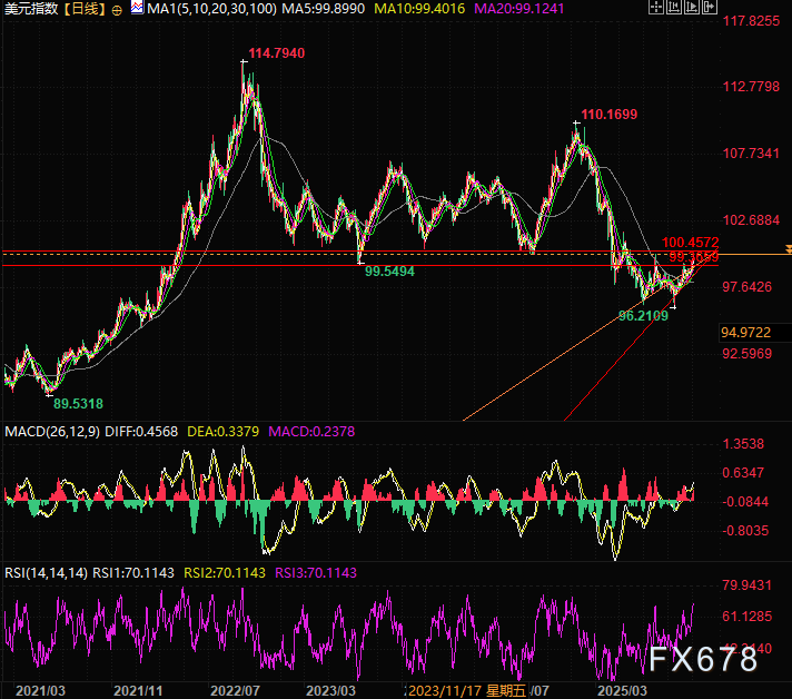 受美国AI泡沫舆论及选举影响,美元获得避险买盘,美元指数收在100关口上方。