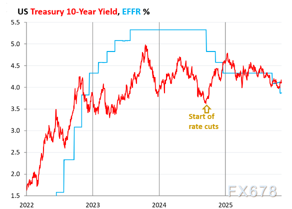 此现象反映出长期收益率由债券市场内生动态决定,并非美联储短期政策利率所能直接主导。