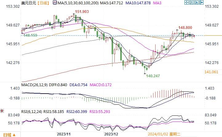 周二(1月30日),美元基本陷于窄幅波动之中,美元兑日元上涨0.09%,至147.62。投资者的注意力紧张的停留在美联储本周利率会议上。预计美联储周三将维持利率不变,投资者更多的将关注主席鲍威尔关于3月降息可能性的任何线索。根据芝商所(CME)的FedWatch工具,强劲的美国经济数据促使交易员将3月降息的押注从一个月前的89%左右减少至42%。Bannockburn Global Forex首席市场策略师表示,美联储可能“比12月更有信心,认为利率的限制性足以降低通胀”。美联储也可能暗示决策者“并不像市场预期的那么急于降息”,他补充称。联储还可能暗示,不希望利率过于具有限制性,其目标是实现经济软着陆。许多分析师预计,美联储首次降息的目的将是防止通胀与联邦基金利率之间的差距过大。众多迹象都表明,美联储的降息过程将是缓缓而行。来自日本政府周二公布的数据显示,日本12月失业率为2.4%,环比下降,路透访查经济学家的预估中值为2.5%。数据对于日元的抬捧作用有限。日内还是要等待美联储利率决议以及会后的声明。若声明还是表示要谨慎对待降息,美元走升。反之,若流露出有望尽早降息的意愿,则美元/日元恐怕将产生较大幅度的回落。