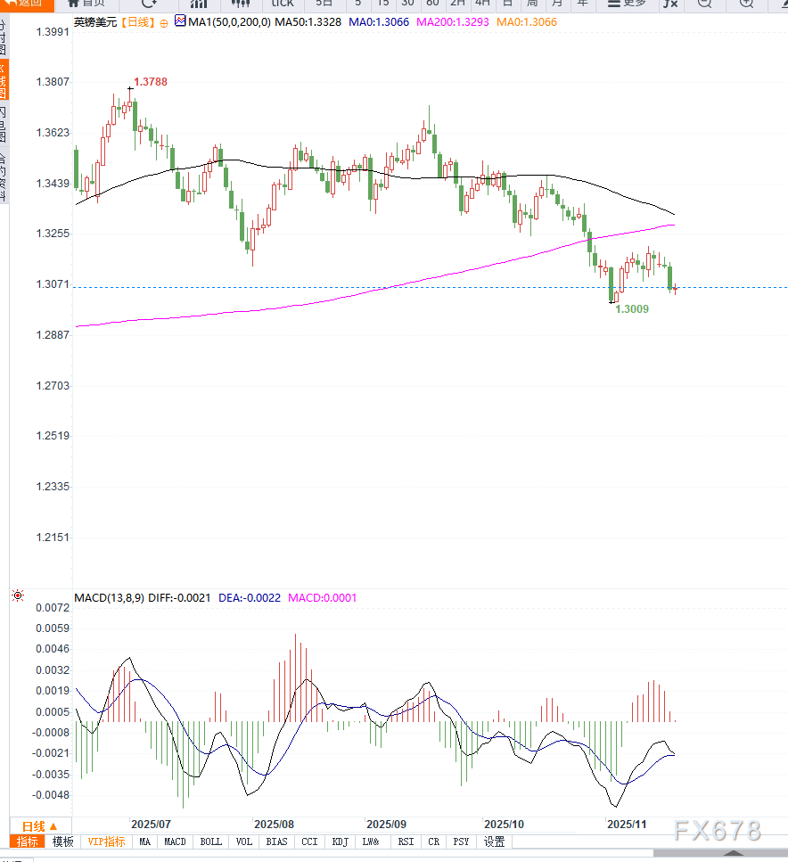 在这种不确定性下,市场削弱了对12月降息的押注,推动美元指数触及约五个月高位,直接压制了GBP/USD的反弹空间。