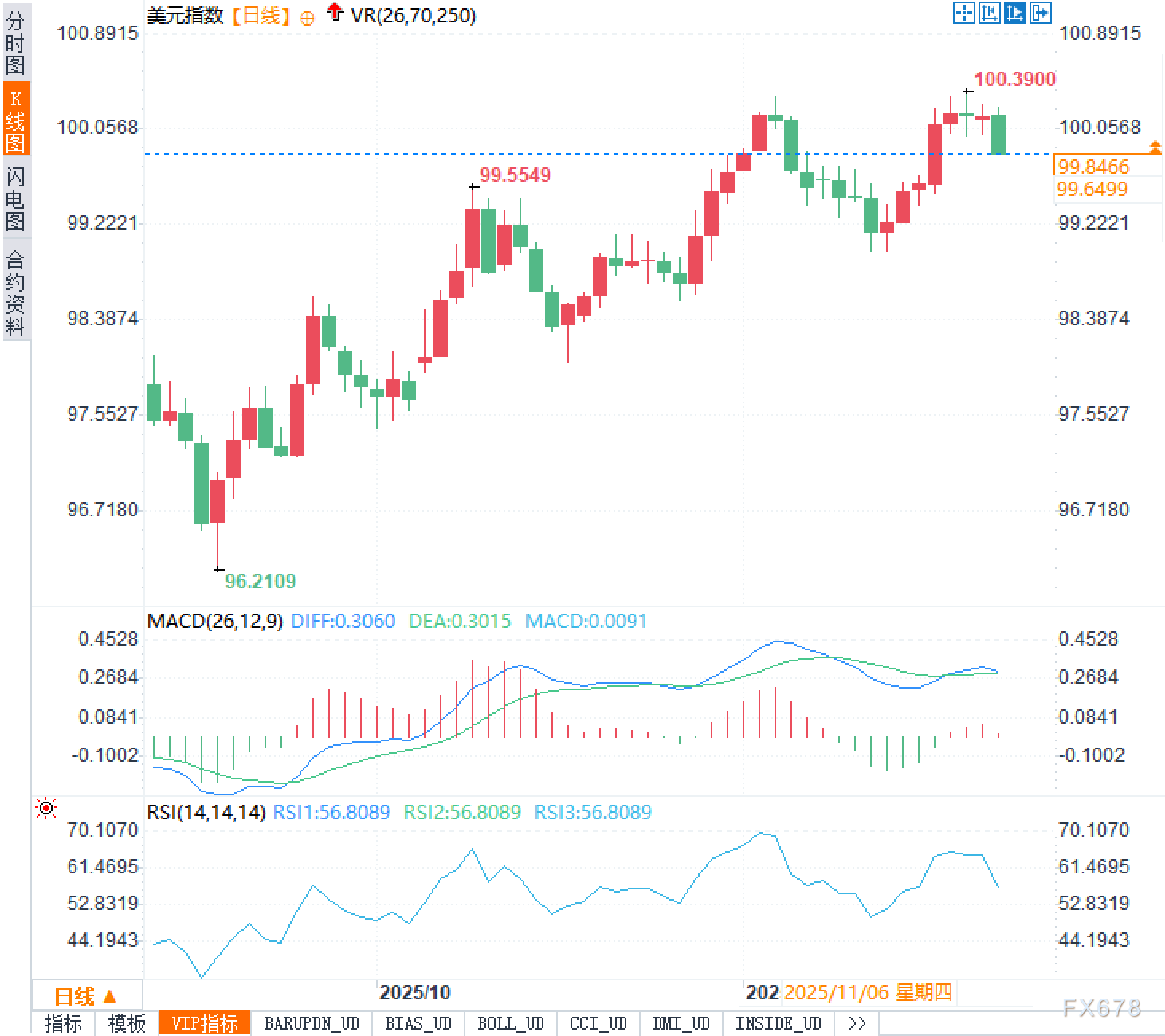 回顾9月和10月的市场走势,一个耐人寻味的现象值得关注:尽管美联储在9月实施了降息,美元指数反而出现上涨。这种看似反常的市场反应源于联邦公开市场委员会在更新预测时削减了未来降息次数的预期。市场对政策前景的重新评估压倒了单次降息的即时影响。
