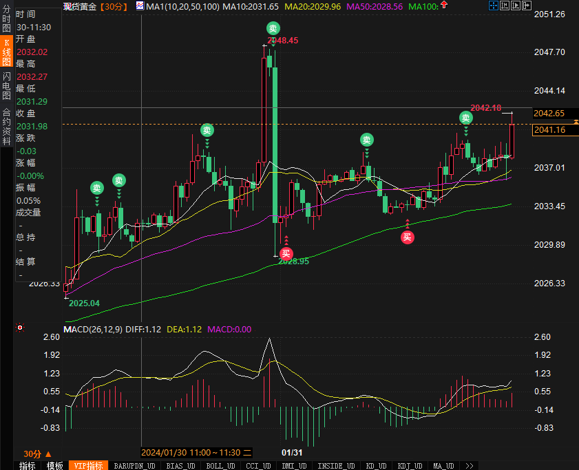 ADP数据公布后,现货黄金价格冲高逾7美元,站上2040关口,现报2041.10美元/盎司。CME最活跃欧元/美元期货合约在北京时间1月31日21:15-21:16一分钟内买卖盘面瞬间成交2622手,交易合约总价值3.57亿美元。