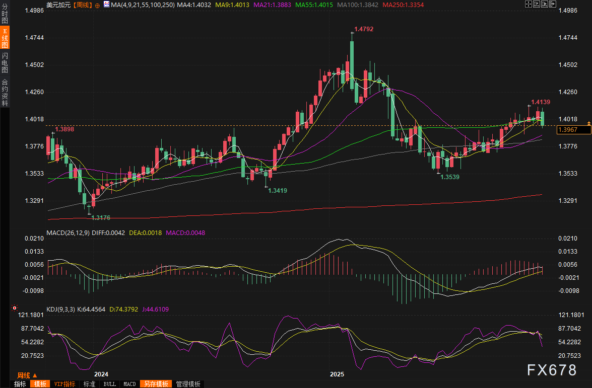 欧元在周五持平于1.1595美元,本周累计上涨0.7%,市场关注乌克兰和平协议谈判可能带来的提振。加元则延续涨势,受加拿大第三季度经济增长远超预期的影响,周五大涨0.44%,美元兑加元一度创一个月新低至1.3937,收报1.3967,本周跌幅0.93%,为5月底以来最大。