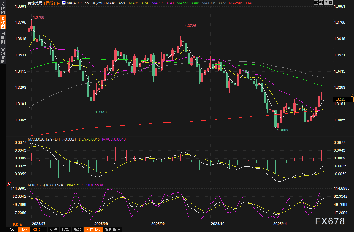 英国预算责任办公室评估显示,即使增加福利支出,财政缓冲资金也将比以往增加一倍以上。预算公布后,英镑迅速上涨约0.5%,周四一度触及1.3268美元附近,周五收报1.3225。本周英镑累计上涨1.02%,创下8月初以来最佳单周表现。分析师将此归因于市场对坏消息的提前消化,以及预算案中更有节制的借贷信号。
