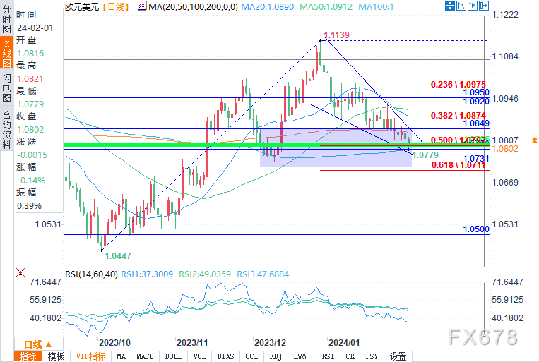 周四(2月1日),欧元兑美元继续走软,美联储上一交易日的评论令美元普遍走强。欧元区整体通胀率的小幅下降对该货币对影响不大,或许是因为核心通胀率高于预期。