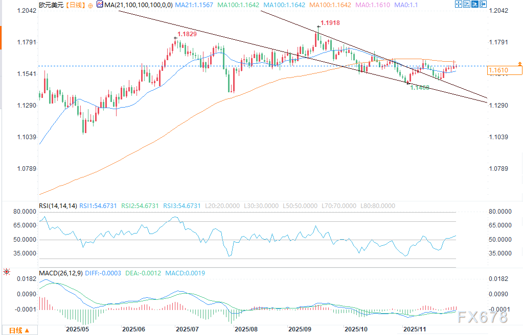 货币政策分化持续塑造整体市场前景,汇价上行阻力相对较小。市场普遍预期欧洲央行将在12月18日的货币政策会议上维持利率不变,相比之下,美国市场坚定认为美联储将在下周的会议中启动降息。从宏观层面来看,此次CPI数据不太可能对欧洲央行的利率预期产生显著影响。荷兰国际集团(ING)的弗朗切斯科·佩索莱(Francesco Pesole)也认同这一观点。就欧元而言,存在轻微的下行风险,但汇率走势大概率将保持中性;若美元如预期般走弱,欧元/美元汇率有望再度接近1.1700关口。