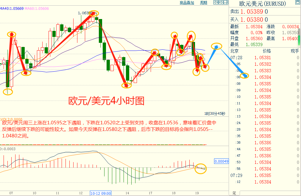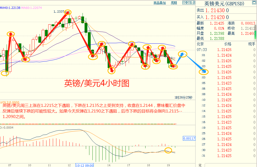 欧美周三下跌在1.0520之上受到支持,上涨在1.0595之下遇阻,意味着欧美短线上涨后有可能保持下跌的走势。如果欧美今天上涨在1.0580之下遇阻,后市下跌的目标将会指向1.0505--1.0480之间。今天欧美短线阻力在1.0575--1.0580,短线重要阻力在1.0620--1.0625。今天欧美短线支持在1.0505--1.0510,短线重要支持在1.0480--1.0485。