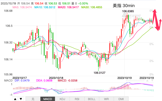 美指中期走势周线图9连阳,中期走势保持在强劲上涨的趋势中。汇价在107.35止步回调,汇价依旧受到均线系统依托,中期客观趋势上行不变。受到CPI数据加持,汇价反弹,刚好在均线系统位置收到支撑,故美指中期上涨的强势地位不发生改变。