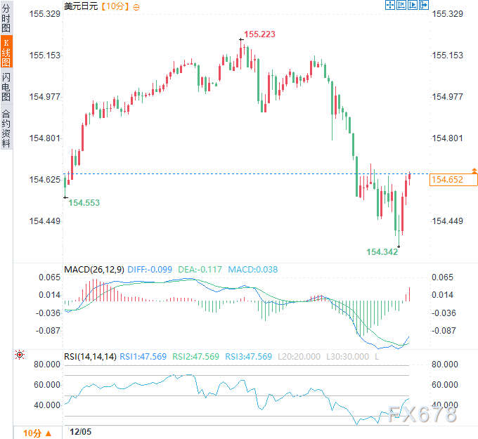 报道发布后美元兑日元走弱,周五(12月5日)欧市时段跌幅约0.34%。在日本央行行长植田和男周一表示其委员会将就加息做出适当决定后,市场参与者对加息临近的预期本周大幅升温。