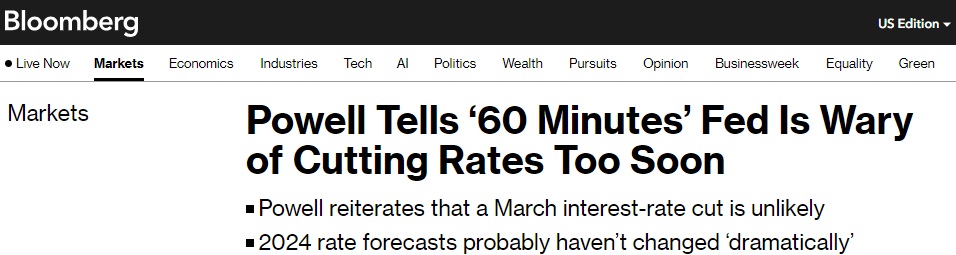 据美国哥伦比亚广播公司(CBS)提供的文字记录显示,鲍威尔上周四接受CBS《60分钟》节目采访时重申,美联储官员希望看到更多的经济数据,以确保通胀在通往2%目标的可持续道路上。该节目于当地时间周日晚间播出。