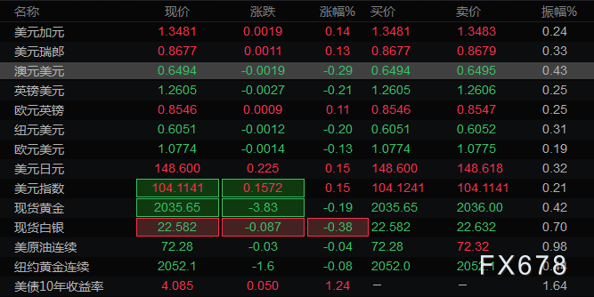 本文提供美元指数、欧元、英镑、日元、瑞郎、澳元、加元及黄金支撑阻力位。