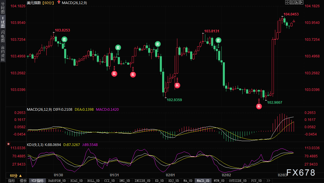 汇市:美元指数周初窄幅震荡,收周三美联储决议令其巨震超100点,上周四因市场押注5月降息幅度更大而受伤,一度触及103关口,上周五在强势非农的提振下大爆发,彻底扭转周线走势,日内涨超近百点,最高触及104.047水平,为7周来最高水平,当周实现连续第5周上涨。