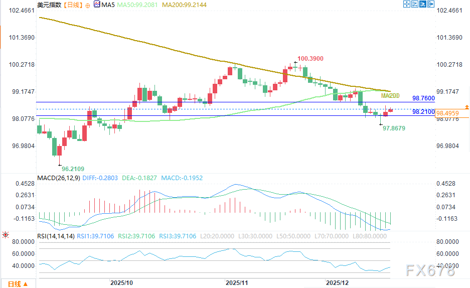 日本则面临着截然相反的困境。对于正全力抗击通胀的日本政府而言,当前的日元汇率明显偏低。因此,日本首相高市早苗不会阻挠日本央行的加息计划。投资者正密切关注日本央行行长植田和男释放的信号,以判断2026年央行的政策动向。市场普遍预期,日本央行将以极为缓慢的节奏推进货币政策正常化。这一预期,为美元兑日元的多头提供了支撑。