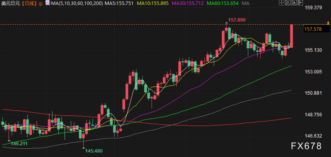 美元兑日元周五上涨,最高升至157.76,为四周来最高水平,创下10月初以来最大单日涨幅。日本央行周五加息25个基点,将短期利率上调至0.75%,利率水平创30年来新高,这也是2025年1月以后,日本央行11个月来再次进行加息,这一政策调整突显出,在1990年房地产泡沫破裂导致物价持续数十年疲软后,通胀逐渐融入经济的重大转变中,日本央行决心继续加息。