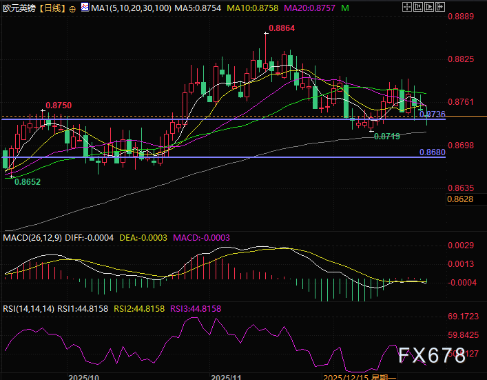 欧元阵营方面,时值年末假期窗口临近,经济数据日历趋于空窗,市场交投流动性持续处于稀薄状态。