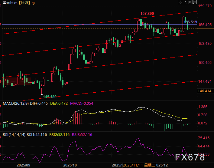 周二(12月23日)欧洲交易时段,美元兑日元跌幅一度扩大至-0.85%,下探至155.65一线,成为外汇市场的核心波动品种。