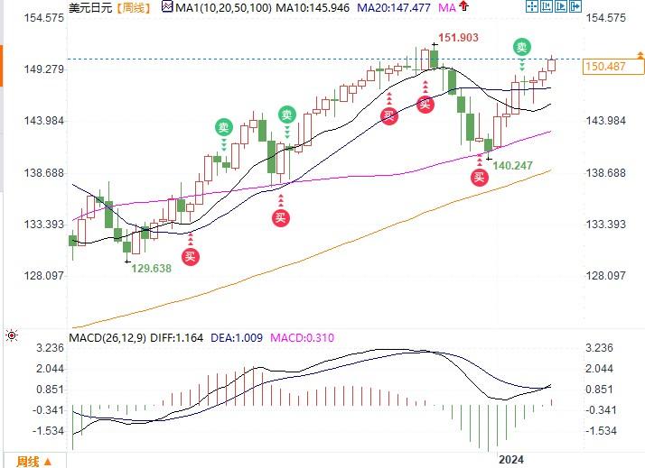 本周美日利差扩大,美元兑日元重返150日元心理关卡,涨幅达6%。财务大臣及财务省财务官声称日元走势较快且具有投机性。然而,这无法解决日本利率长期低迷及货币宽松问题。日本央行总裁表示,即使结束负利率,货币条件仍将宽松,政策紧缩进程缓慢。日本第四季GDP连续两季萎缩,凸显日元弱势。澳洲联邦银行外汇策略师认为,春季工资谈判对日元走势更重要,市场预计日本央行4月升息可能性高。