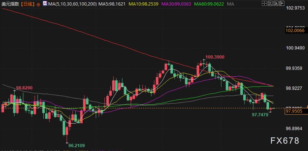 美元兑其他货币涨跌互现。美元指数微涨0.07%,至97.96。欧元兑美元下跌0.14%,至1.1778美元;英镑兑美元下跌0.13%,报1.3498美元。澳元和加元兑美元则分别小幅上涨0.07%和0.11%。