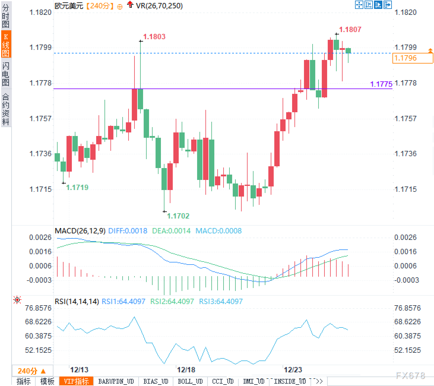 周三(12月24日)欧洲时段,欧元兑美元在1.1800附近运行,早些时候触及1.1807的高位。临近圣诞假期,市场流动性偏低,汇价在前期涨幅之后转入高位盘整,短线方向更多由利率预期与情绪定价主导。