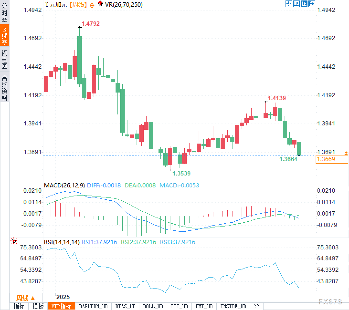 2025年的美元兑加元走出了极具戏剧性的行情轨迹。年初时,美元仍在延续前一年的强势惯性,推动汇价一度冲高至1.4792,创下超过20年来的最高水平。这一位置不仅刷新了多年纪录,更带有一种“代际高点”的意味——仿佛是过去长期美元霸权与加拿大经济疲软叠加下的情绪顶点。然而,这种强势并未持续太久。随着全球市场对美元整体信心的减弱,美元进入所谓的“减重”模式,其对多种主要货币的统治力逐步瓦解,加元也因此获得喘息之机。
