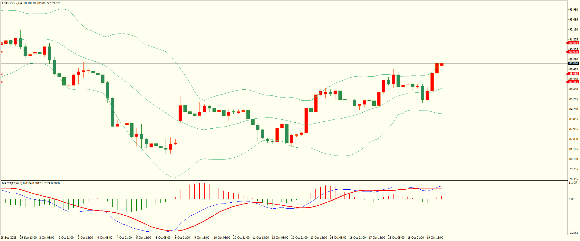 原油昨日回调至第一支撑附近展开反弹,至收盘续创日内新高,日线报收上下影线中阳线,目前上方紧邻前低阻力区,收复后方可继续,从4H来看,布林中轨偏上,MACD零轴上方运行,日内下方首要支撑88.00-10,第二支撑87.20-30,上方阻力90.00,90.80-90,保持在第一支撑上方短线有望测试第一阻力。