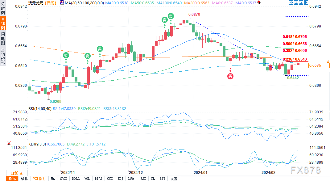 周一(2月19日),澳元和纽元盘中走高。澳元/美元盘中报0.6538,涨幅0.21%,纽元/美元盘中报0.6143,涨幅0.64%。