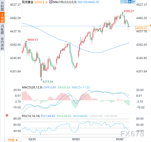 (现货黄金小时图,来源:易汇通)